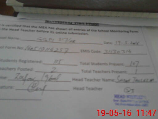 | Attendance Register | Head Teacher | MEA with School | Visit Proof |