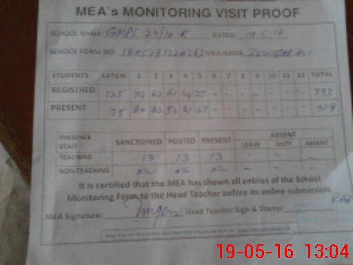 | Certified that this School was Inspected by the Undersigned MEA/DMO Today and the Information Stated Above is as Per Record. | |||||