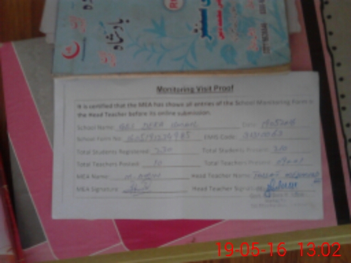 | Certified that this School was Inspected by the Undersigned MEA/DMO Today and the Information Stated Above is as Per Record. | |||||