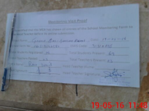 | Attendance Register | Head Teacher | MEA with School | Visit Proof |