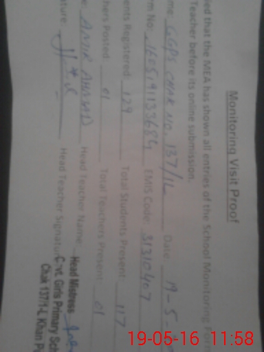 | EMIS Code: 31310407 | Name of School: GGPS CHAK NO.137/1-L | |||