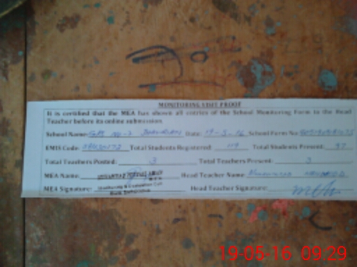 | Attendance Register | Head Teacher | MEA with School | Visit Proof |