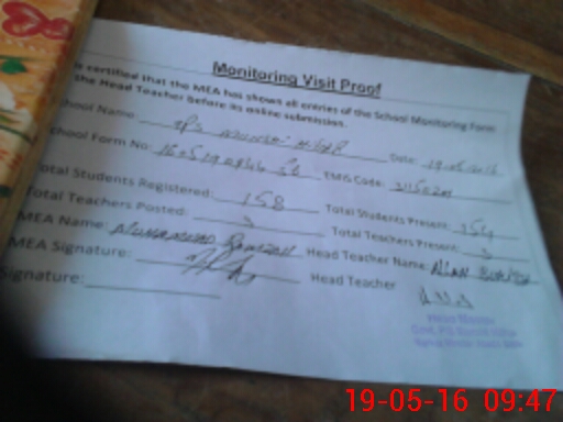 | Attendance Register | Head Teacher | MEA with School | Visit Proof |