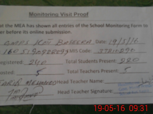 | Certified that this School was Inspected by the Undersigned MEA/DMO Today and the Information Stated Above is as Per Record. | |||||