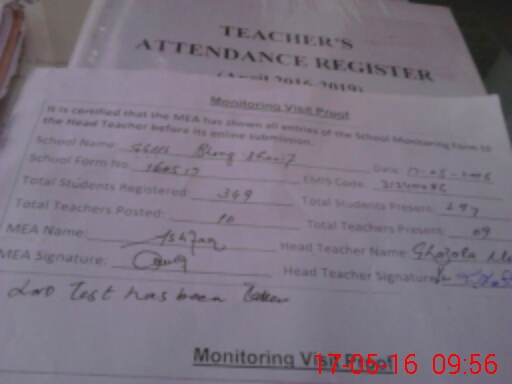 | Attendance Register | Head Teacher | MEA with School | Visit Proof |