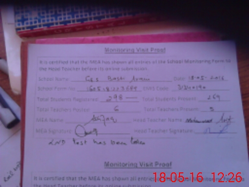 | Certified that this School was Inspected by the Undersigned MEA/DMO Today and the Information Stated Above is as Per Record. | |||||