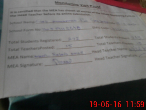 | Certified that this School was Inspected by the Undersigned MEA/DMO Today and the Information Stated Above is as Per Record. | |||||
