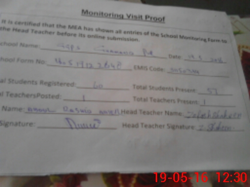 | Certified that this School was Inspected by the Undersigned MEA/DMO Today and the Information Stated Above is as Per Record. | |||||