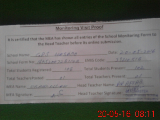 | EMIS Code: 39210518 | Name of School: GPS WASOO | |||