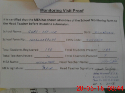 | Certified that this School was Inspected by the Undersigned MEA/DMO Today and the Information Stated Above is as Per Record. | |||||