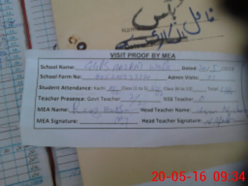 | Attendance Register | Head Teacher | MEA with School | Visit Proof |