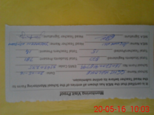 | Attendance Register | Head Teacher | MEA with School | Visit Proof |
