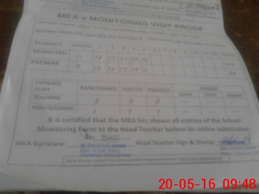 | Certified that this School was Inspected by the Undersigned MEA/DMO Today and the Information Stated Above is as Per Record. | |||||