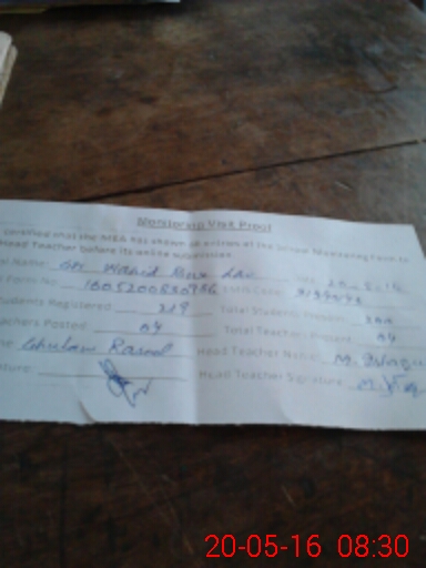 | Attendance Register | Head Teacher | MEA with School | Visit Proof |