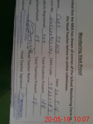 | Certified that this School was Inspected by the Undersigned MEA/DMO Today and the Information Stated Above is as Per Record. | |||||
