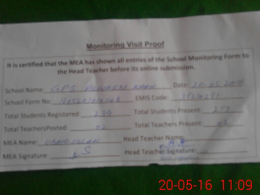 | EMIS Code: 39210291 | Name of School: GPS ALWARDI KHAN | |||