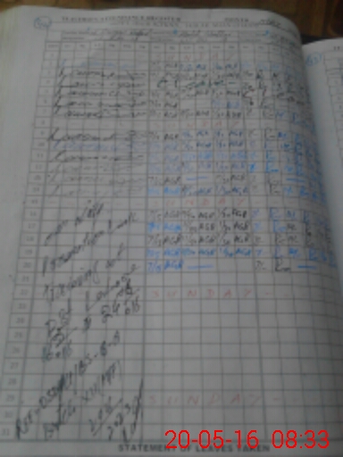 | CNIC | Full Name | Designation | R/C | Absence During Last Calender Month |