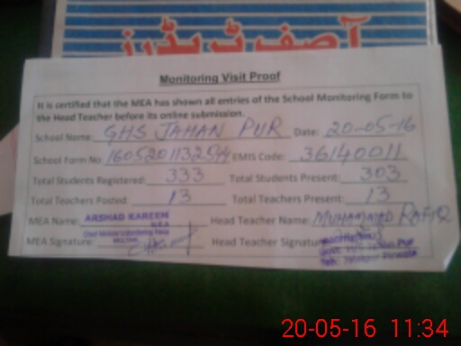 | EMIS Code: 36140011 | Name of School: GHS JAHAN PUR JALALPUR PIRWALA | |||