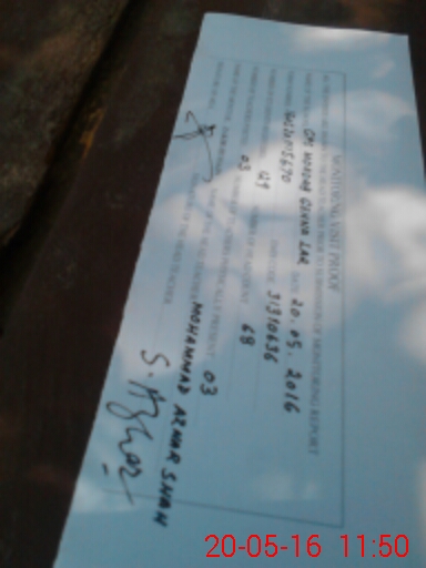 | Monitoring Date: 20-05-2016 | Start Time: 20-05-2016 11:14 AM | End Time: 20-05-2016 11:52 AM | Name of MEA: Za**** Hu**** | |