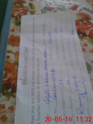 | Attendance Register | Head Teacher | MEA with School | Visit Proof |