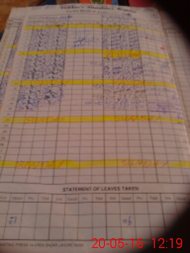 | CNIC | Full Name | Designation | R/C | Absence During Last Calender Month |