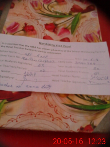 | Attendance Register | Head Teacher | MEA with School | Visit Proof |