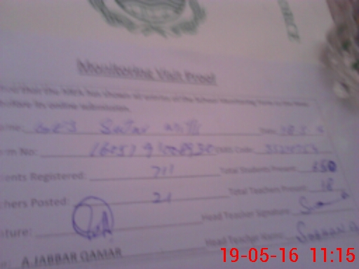 | Remarks (Use Separate Page if Required): There r 711 students and only 10 classrooms r there but 8 more class rooms r required to meet the requirements of students | |||||