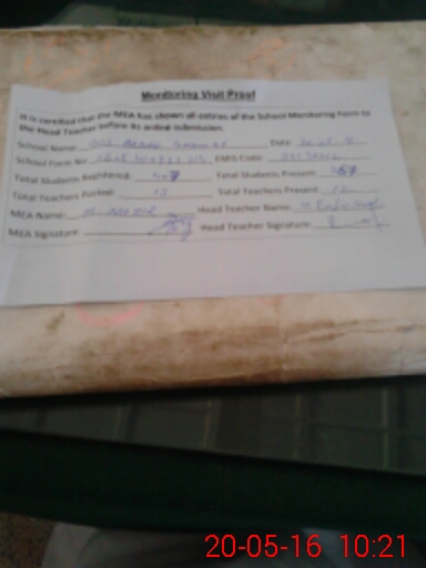 | Attendance Register | Head Teacher | MEA with School | Visit Proof |
