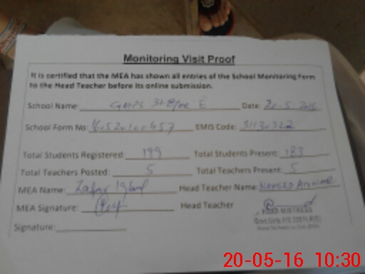 | Attendance Register | Head Teacher | MEA with School | Visit Proof |