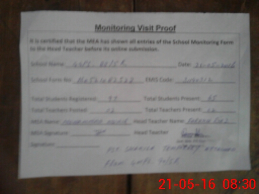 | Attendance Register | Head Teacher | MEA with School | Visit Proof |
