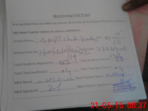 | Name: MU**** EH**** Designation: (School Headmaster's/Headmistress's) PST Phone/Cell Number: 03**** |