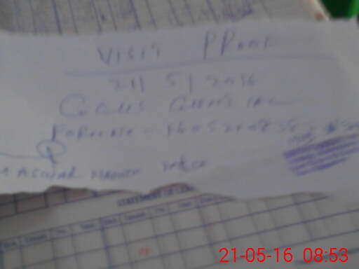 | Monitoring Date: 21-05-2016 | Start Time: 21-05-2016 08:12 AM | End Time: 21-05-2016 08:58 AM | Name of MEA: HA**** AS**** NA**** (R**** | |