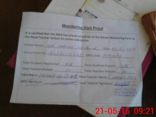 | Attendance Register | Head Teacher | MEA with School | Visit Proof |