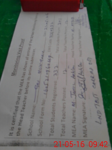 | Certified that this School was Inspected by the Undersigned MEA/DMO Today and the Information Stated Above is as Per Record. | |||||