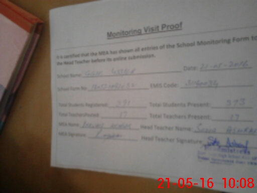 | Attendance Register | Head Teacher | MEA with School | Visit Proof |