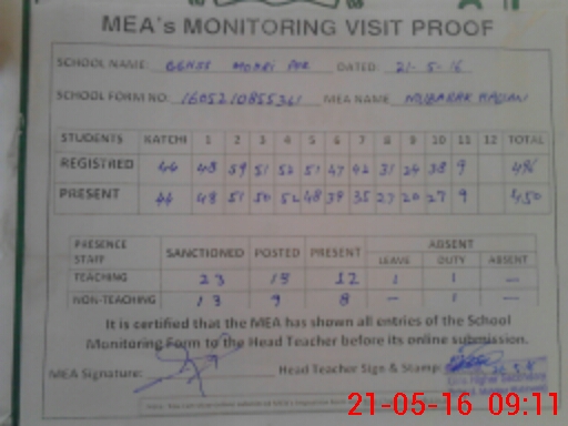 | Certified that this School was Inspected by the Undersigned MEA/DMO Today and the Information Stated Above is as Per Record. | |||||