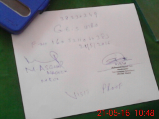 | Monitoring Date: 21-05-2016 | Start Time: 21-05-2016 10:23 AM | End Time: 21-05-2016 10:52 AM | Name of MEA: HA**** AS**** NA**** (R**** | |