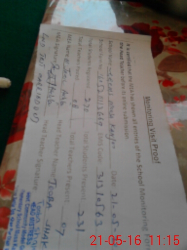 | Attendance Register | Head Teacher | MEA with School | Visit Proof |