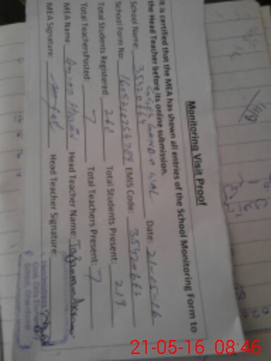 | Certified that this School was Inspected by the Undersigned MEA/DMO Today and the Information Stated Above is as Per Record. | |||||