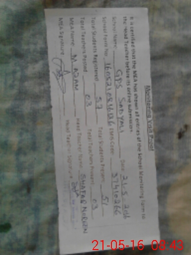 | Attendance Register | Head Teacher | MEA with School | Visit Proof |