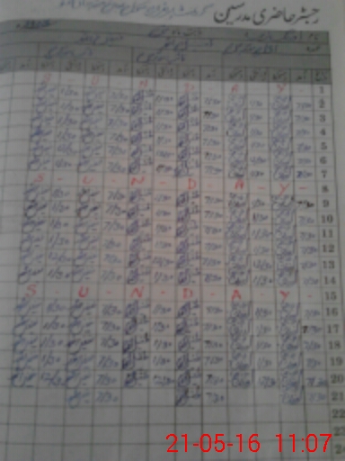 | CNIC | Full Name | Designation | R/C | Absence During Last Calender Month |