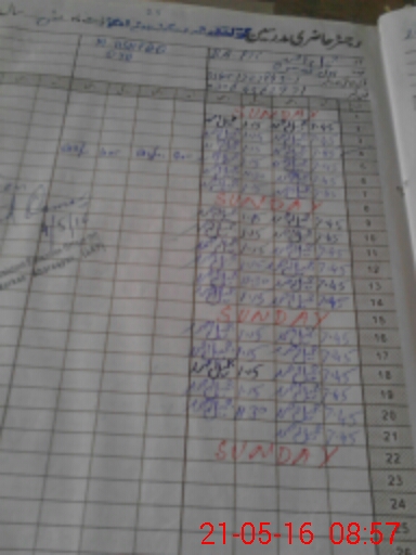 | CNIC | Full Name | Designation | R/C | Absence During Last Calender Month |