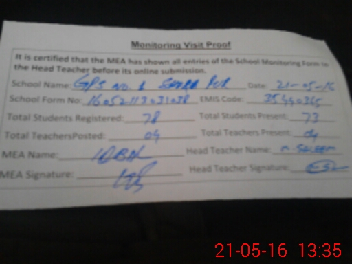 | Certified that this School was Inspected by the Undersigned MEA/DMO Today and the Information Stated Above is as Per Record. | |||||
