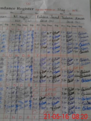 | CNIC | Full Name | Designation | R/C | Absence During Last Calender Month |