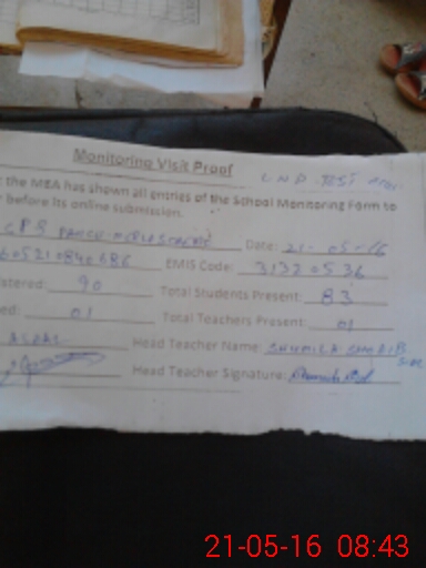 | Name: KA**** BI**** Designation: (School Headmaster's/Headmistress's) P S T Phone/Cell Number: 03**** |