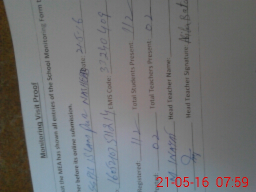 | Attendance Register | Head Teacher | MEA with School | Visit Proof |