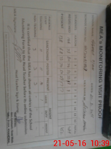 | Monitoring Date: 21-05-2016 | Start Time: 21-05-2016 09:58 AM | End Time: 21-05-2016 10:40 AM | Name of MEA: MU**** SA**** AK**** 13**** | |