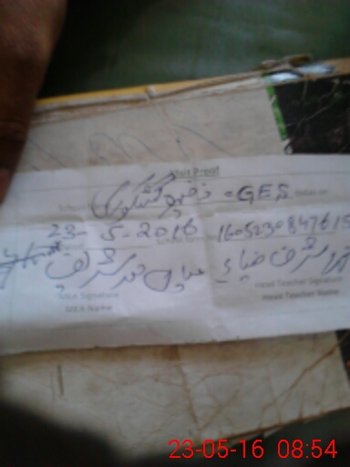 | School Visited by School Health & Nutrition Supervisor (No. of Visits) | 1 | Name1: | Mohammad Sharif | Name2: | |