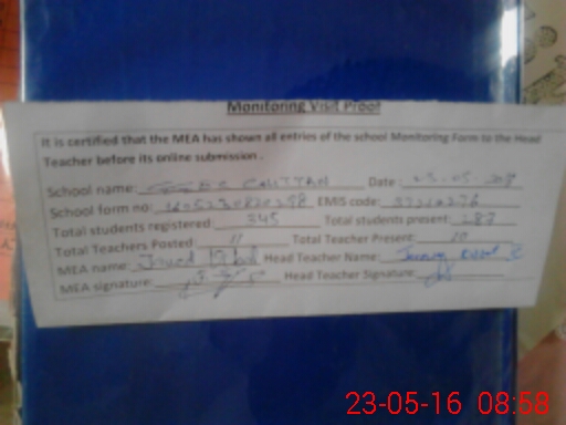 | Attendance Register | Head Teacher | MEA with School | Visit Proof |