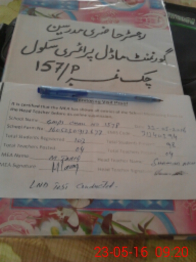 | Attendance Register | Head Teacher | MEA with School | Visit Proof |